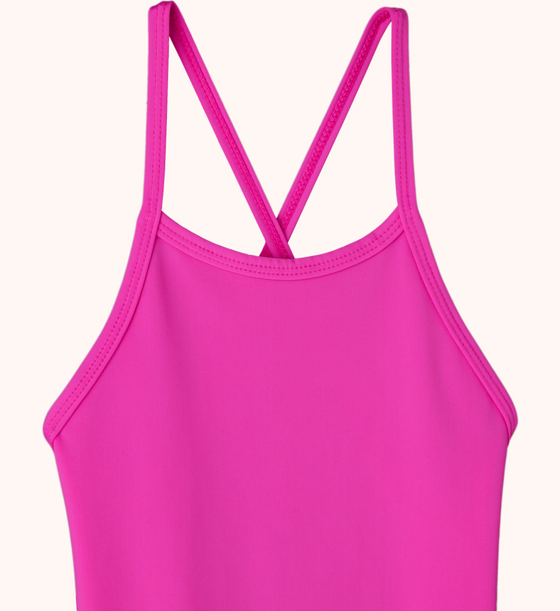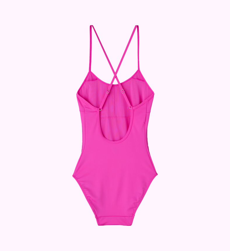 If you are looking for a one piece that keeps everything in place this will be sure to please. Just like our bikini bottoms, it magically turns a pointy poker into a dainty dune. No tucking required. Made of the highest quality compression spandex and mesh this one-piece has adjustable straps to get that perfect fit.